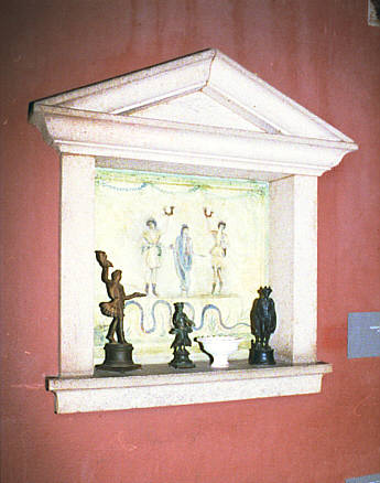 In jedem Haus wurden die Schutzgötter von Haus und Familie, die Laren, verehrt. Eine kleine Nische nahm Bronzestatuetten der Götter und kleine Öllampchen auf.