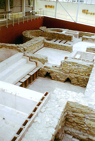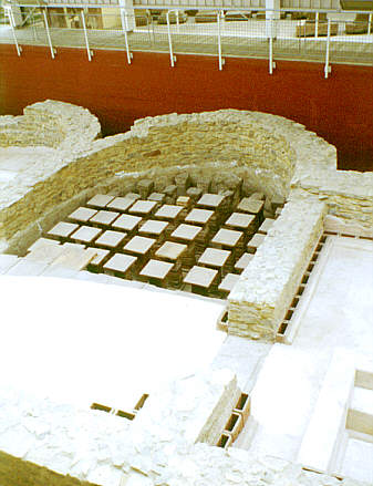 rechts), dann Laubad mit dem offenliegenden Hypokaustboden