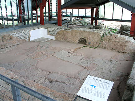 In der hinteren Ecke rekonstruiertes Mauerwerk mit aufgebrachtem Verputz