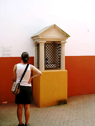 der Herberge kleine Tempelchen mit Götterbildern der Laren