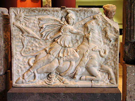 andere Szene des Mithras-Mythos ist auf diesem Kultstein dargestellt: