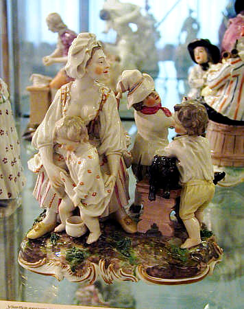 Die Gruppe "Die ungezogenen Kinder" bilden ein Gegenstück zu der Gruppe "Die gute Mutter" (Reiss-Engelhorn-Museen, Mannheim). Sind dort die drei Kinder geradezu friedlich, ob sich die Mutter mit ihnen ausdrücklich beschäftigt oder nicht, nutzen hier die Kinder die Zeit, in der die Mutter das Jüngste auf den Topf hebt, dazu, Unsinn und Schabernack zu treiben.