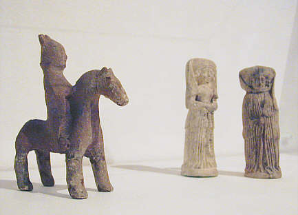 a) Straßburg, mittelalterlich, Ton glasiert, H. 11,5 cm b) Worms, 15. Jh., Weißer Ton, H. 9,6/10,4 cm