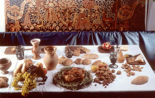 Der gedeckte Tisch in einem wohlhabenden oberrheinischen Haushalt um 1500 | ||||||||