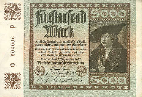 Rückseite: "Reichsbanknote fünftausend Mark"