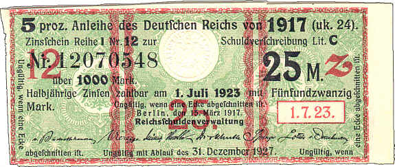 5% -Anleihe von 1917, Zinsen zahlbar am 1.7.1923, Verfall am 31.12.1927