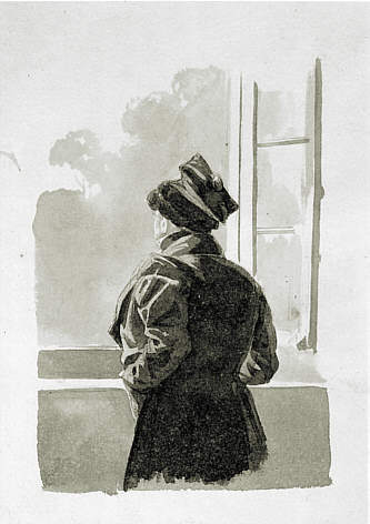 Junger Mann am Fenster 1820/22 Tuschlavierung über Blei