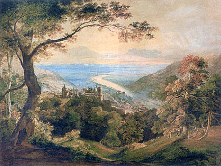 Klassischer Blick der deutschen Romantiker vom Hang des Königstuhls über das Schloß auf den Austritt des Neckars in die Rheinebene.