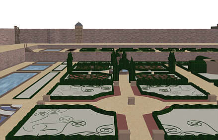 Brunnenkarree, dahinter die Zwischen- und die Obere Terrasse
