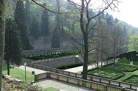 vom östlichen Hang in das Hauptparterre (Hauptterrasse),