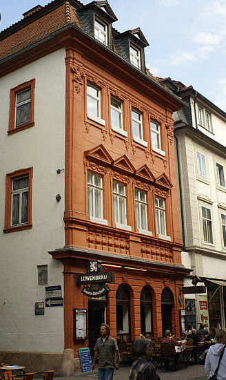 Schmales vierachsiges Barockhaus, 1721 – 24 durch den Architekten Johann Jakob Rischer errichtet. Über einem rustizierten Erdgschoss erheben sich zwei durch Eckpilaster zusammengefasste Stockwerke, die Fenster der Bel Etage mit eingedrehten Voluten und Diamantbossen im Fenstersturz, dazu mit Dreiecksgiebeln und in der Brüstungszone einer vorgetäuschten Balustrade, die des 2. Obergeschosses mit kleinen Konsolen unter den Fensterbänken und einem Schlussstein im Fenstersturz. Die Kapitelle der sich verjüngenden Eckpilaster verbinden ionische Voluten mit floralem Dekor. |