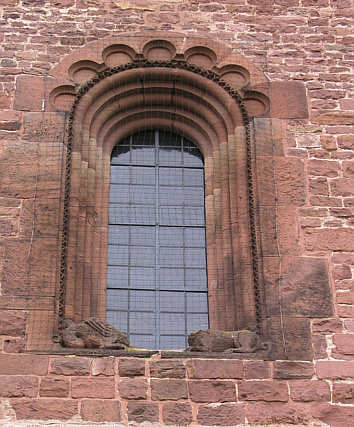 Fenster in der Ostseite. Im Gewände abwechselnd Rund-