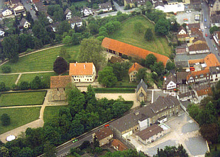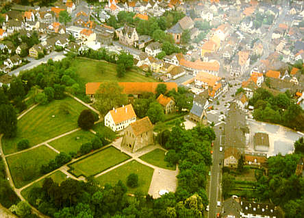 Luftbild des Klostergeländes, westlicher Teil. Rechts von