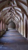 Unten: Mittelschiff der Klosterkirche, Kreuzgang, Zellenbau