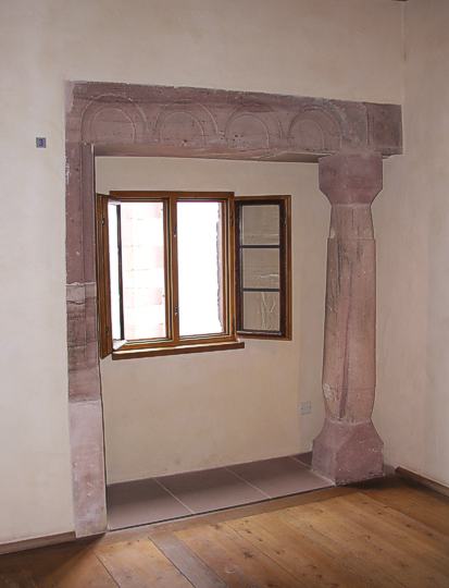 Links: Wiederverwendete Spolien aus dem romanischen Bau