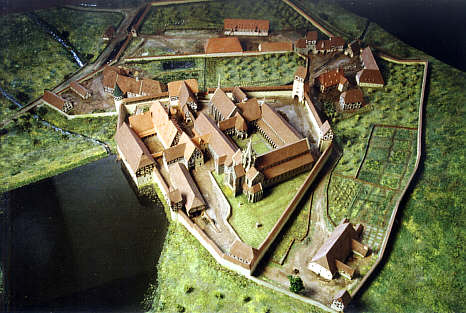 die typische Verteilung von Kirche und Konventsgebäuden zeigt.