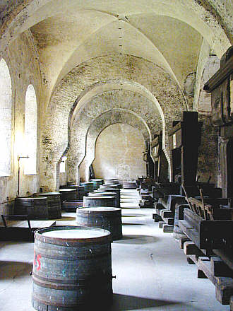 Im 19. Jahrhundert unterfangene Gurtbögen im nördlichen Bereich. Der Raumeindruck des alten Laienrefektoriums wird dadurch erheblich gemindert.