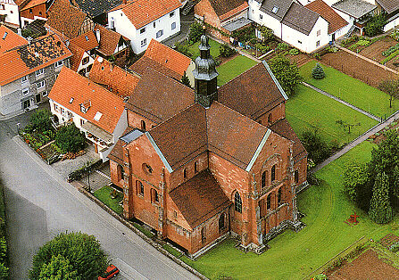 Im Gegensatz zur sonst üblichen Apsis war der Chor der Klosterkirche flach geschlossen. Die Ostwand trug in romanischer Zeit fünf Fenster, hier wurde in gotischer Zeit oft ein großes Maßwerkfenster eingebrochen.