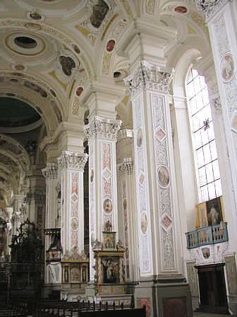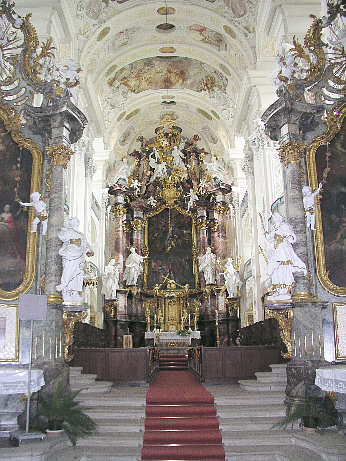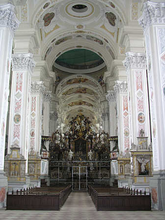 Die Klosterkirche ist eine dreischiffige Hallen-Basilika