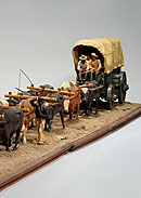 Unten: Modell eines Ochsenwagens aus Deutsch-Südwestafrika, 1939. Kurt Tausch (1899-1969). © Museum für Kommunikation Berlin