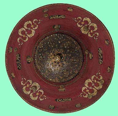 1575-1600, Istanbul Seidenstickerei auf Weidengeflecht, Metallfäden, Seide, Eisen, Rubine Türkis und Samt Durchmesser 56 cm Topkapi Saray Museum, Istanbul Foto Hadiye Cangokce
