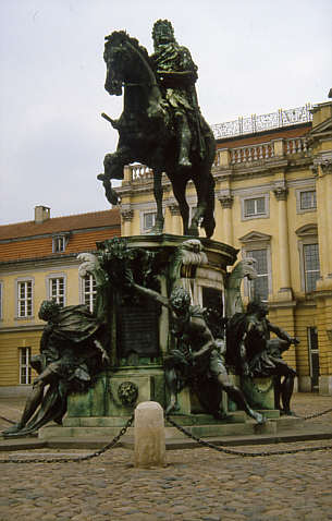 Denkmal des Großen Kürfürsten Friedrich Wilhelm I., von Andreas Schlüter, 1696-1700, Bronzeguss 1700 von Johann Jacobi. Ehemals auf der Langen Brücke aufgestellt, seit 1952 im Ehrenhof des Schlosses Charlottenburg Berlin, Charlottenburger Schloss