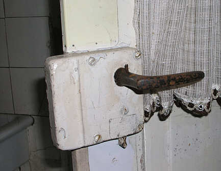 Von wesentlich einfacherer Bauart sind die "untergeordneten" Türbeschläge, wie hier das Kastenschloss an der Tür von der Küche zum Hof.