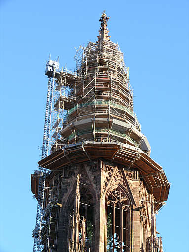 Im Bild ein erneuerter Fünfpass am Turmhelm des Freiburger