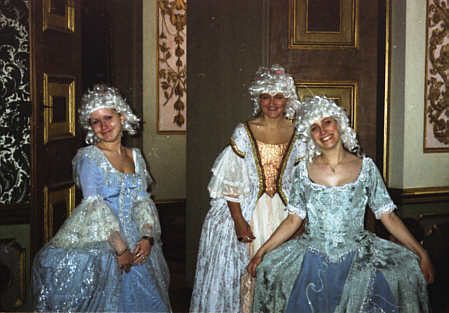 Bei Hofe: Drei Hofdamen in Positur. Es macht sichtlich Spaß