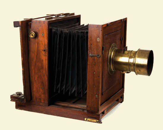 Historische Reisekamera des Herstellers Liesegang, Elberfeld (um 1860)