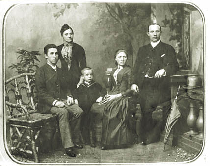 Fünf Geschwister vor einer illusionistischen Gartenkulisse