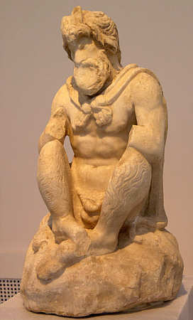 Bild: Auf einem Felsen hockender gehörnter Pan