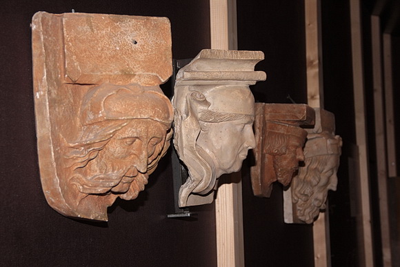 Neben Wasserspeiern und Kapitellen waren Konsolen, d.h. Auflager für Balken und Stürze, bevorzugte Orte für allerhand Skulpturen. Der Narr (Bild links) ist auch hier vertreten und bezeugt auf ewige Zeiten seine Gottesferne.