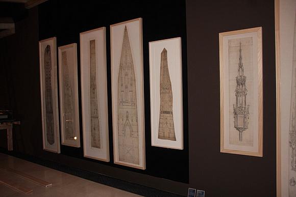 Für den Bau des Turms sind Risszeichnungen überliefert, die verschiedene Versuche verdeutlichen, den Turm aus seinem frühen massiven Unterbau heraus zu einem am Ende des 13. Jahrhunderts modernen Turmhelm zu entwickeln.
