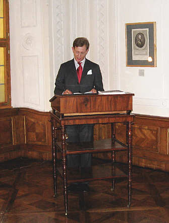 Bernhard Prinz von Baden bei der Eröffnung der Ausstellung im Prinzenbau des Schlosses Salem, 27.8.06