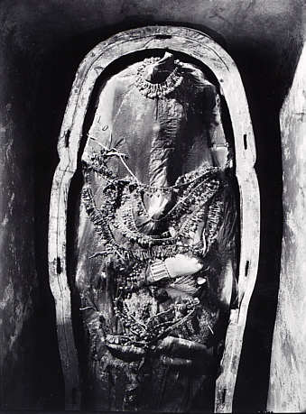 Photographie originale après la découverte: vue dans le sarcophage ouvert