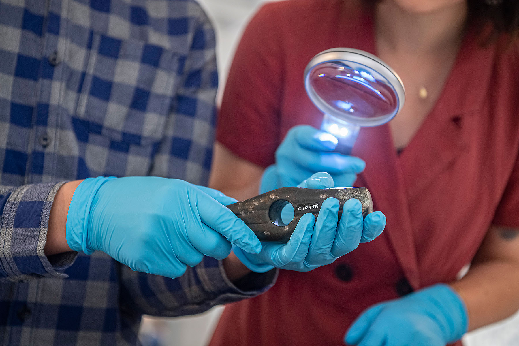 Links: Nutzerinnen und Nutzer können die Objekte selbst in die Hand nehmen und genau betrachten.