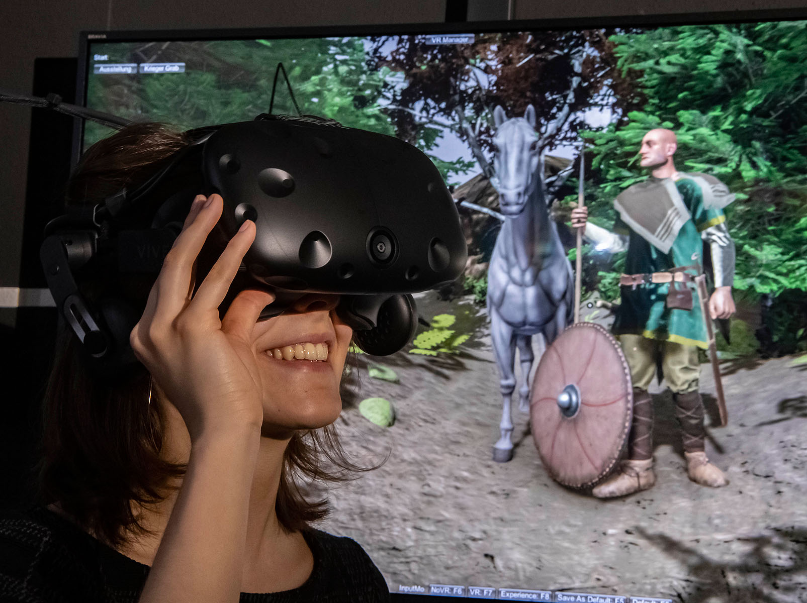 Im letzten Raum der Ausstellung, dem ExpoLab, wird Geschichte virtuell lebendig: Sechs Sitzplätze mit Virtual Reality-Brillen laden dazu ein, in vergangene Lebenswelten einzutauchen und die ausgestellten Objekte in ihrem ursprünglichen Kontext zu erleben. In 360°-Panorama-Szenen wird das Schicksal eines Kriegers, das Leben in einem Langhaus oder der Herstellungsprozess in einer Metallgießerei visualisiert.