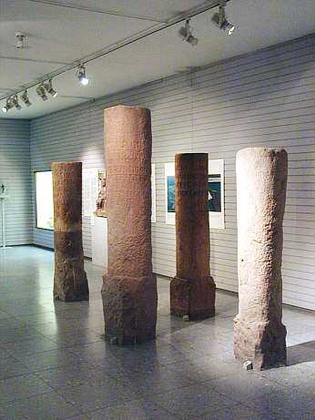 | von links nach rechts: Leugenstein aus Remchingen-Nöttingen (M. Aurelius Severus Alexander: 17 Leugen von Aquae (=Baden-Baden)) Leugenstein aus Sinzheim (Kr. Rastatt, M. Aurelius Antoninus, gen. Caracalla, 4 Leugen von Aquae ) Leugenstein aus Heidelberg (M. Aurelius Antoninus, gen. Elagabal, 4 Leugen von Lopodunum (=Ladenburg) Leugenstein aus Sinzheim (Kr. Rastatt, M. Antoninus Gordianus, 4 Leugen von Aquae) |