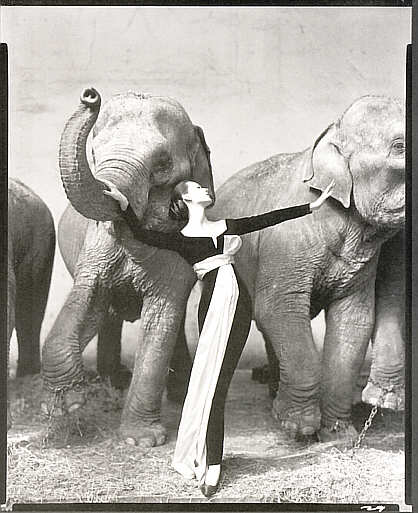 Richard Avedon Dovima mit Elefanten. Abendkleid von Dior Cirque d'Hiver, Paris, August 1955