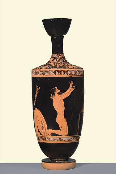 Ölgefäss (sog. Lekythos) mit Aias vor seinem Selbstmord, attisch, um 460 v. Chr.