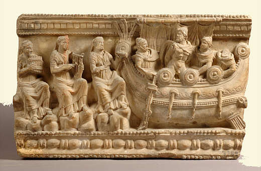 Graburne mit Odysseus und den Sirenen, etruskisch, aus Volterra, 2. Jahrhundert v. Chr.
