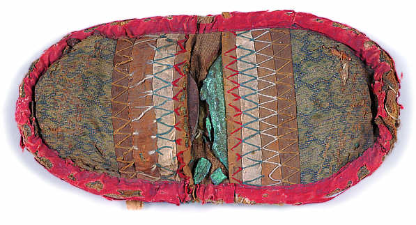 Das bestickte Seidenbrokatetui ist hier in geöffneter Form