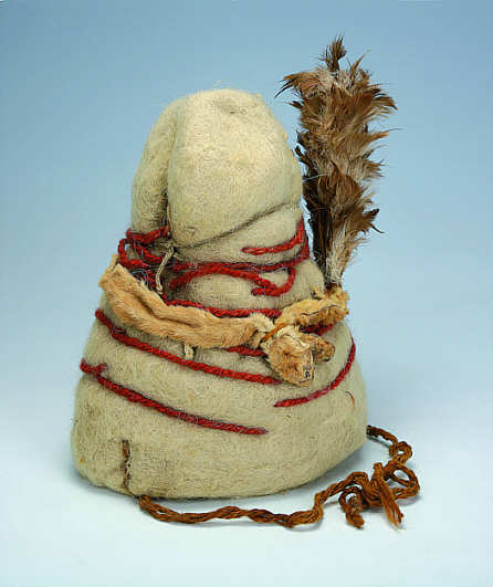 Wolle, Federn, Wieselfell, Farbmittel, H. 25,5 cm