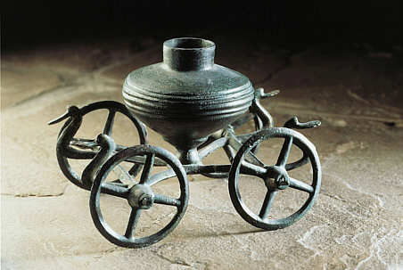 auf Bronzegefäßen und prächtigen vierrädrigen Wagen. Im