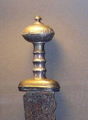 Das Schwert mit dem Silberknauf gehörte einem römischen Offizier, dessen Skelett im Graben des Kastells Rheingönheim gefunden wurde. Es wurde 70 n. Chr. in einem Aufstand zerstört.