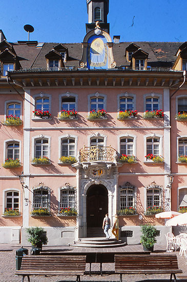 Das neue Rathaus wurde 1726, vierzig Jahre nach dem großen Stadtbrand von 1726, durch Baumeister Ferdinand Weitzenegger als schönster barocker Neubau von Waldshut errichtet.