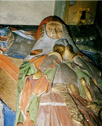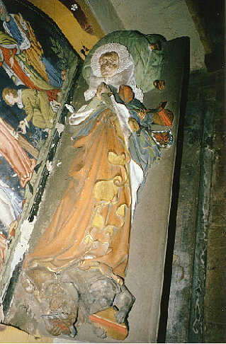 Detail der liegenden Figur: Der Markgraf in Brustharnisch, Kettenhaube
