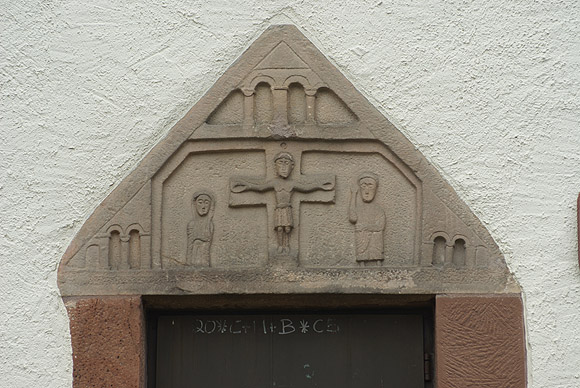 In die Nordwand des Langhauses ist ein romanisches Tympanon eingemauert.
