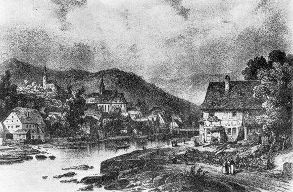 Die Gernsbacher Oberstadt von Süden - "nach einem alten Stich"